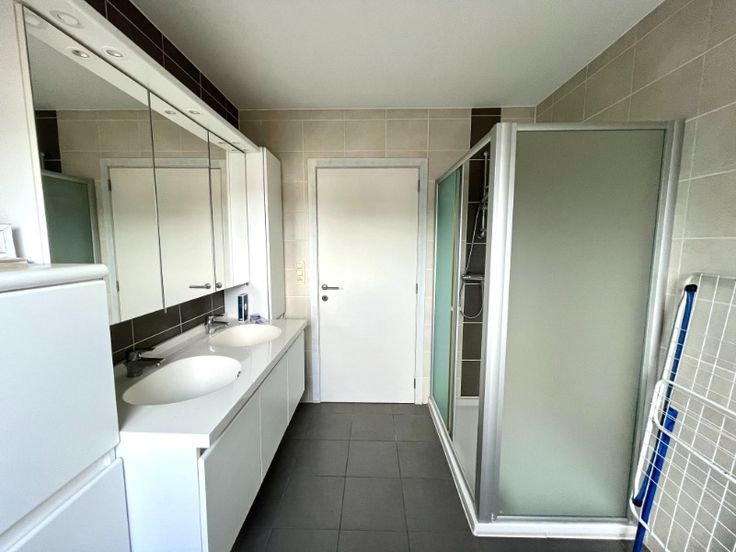 Het appartement omvat een inkom, grote leefruimte, open ingerichte keuken met aansluitende berging, badkamer met douche en dubbele wastafel, twee slaapkamers, terras en kelder.