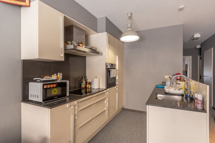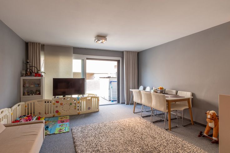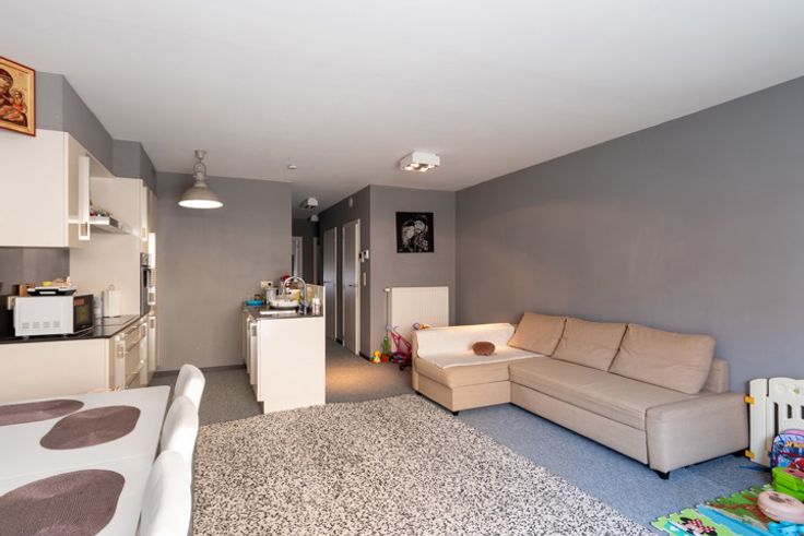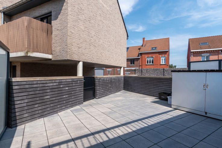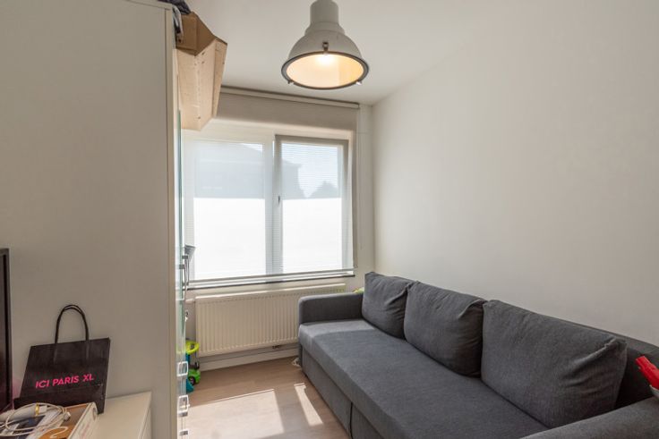 Jong appartement op centrale ligging. Dit gelijkvloers appartement heeft 2 slaapkamers, eigentijdse badkamer, berging, leefruimte met open keuken die toegang verlenen tot het grote zonnige terras met nog een praktische achteruitweg. Ondergronds: privé kelder en autostaanplaats. Vaste kost 50,-euro per maand.