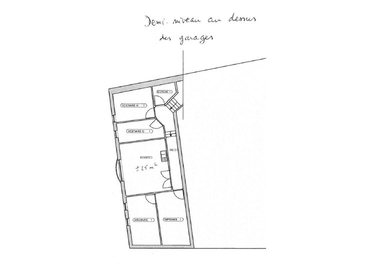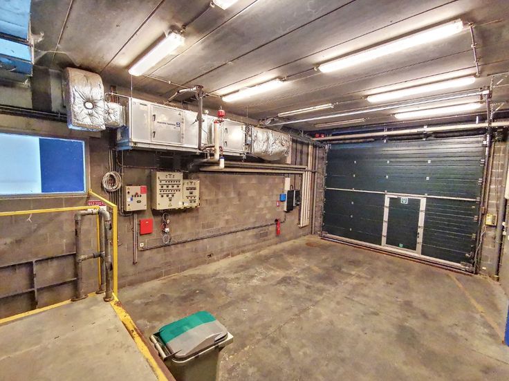 Indeling: Hoofdgarage van 60m² met grote elektrische deur en lift, 2 andere garages, grote open ruimte van 140m², sanitair, keuken en een aantal kleine ruimtes.