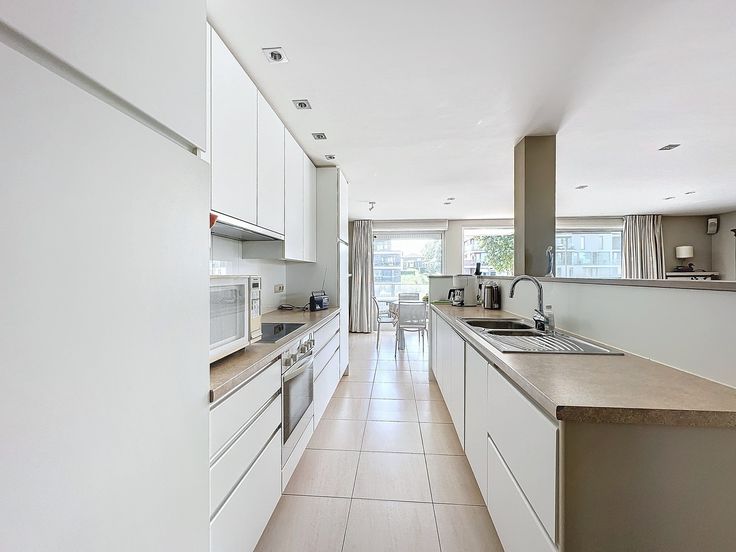 Dit ruim en en zonnig hoekappartement is perfect gelegen halverwege het charmante dorp en de verfrissende zee. Met maar liefst 3 zonneterrasen en een prachtig zicht op de aangelegde tuin geniet je hier van het beste van beide werelden. Indeling: inkom met apart toilet en vestiaire, royale woonkamer, modern ingerichte open keuken met aanpalende ruime berging, 3 slaapkamers, 2 badkamers, grote kelder. Vernieuwde condensatieketel op aardgas. Op het gelijkvloers is de mogelijk tot aankoop van een dubbele garage (10m30 x 2m90) en/of een parking.