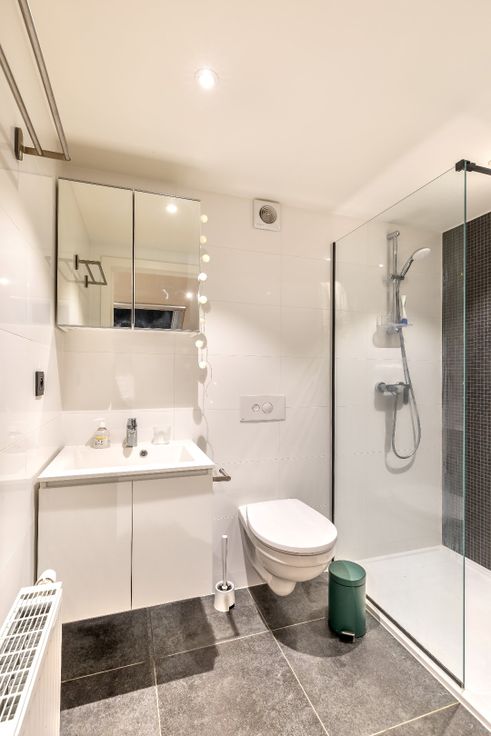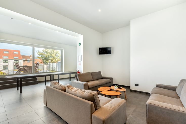 Deze studentenkamer werd luxueus en tot in de puntjes afgewerkt en is voorzien van airconditioning. De kamer beschikt over een privatieve badkamer met eigen sanitair (douche, wasbak en toilet) en over een keukenblok met ingebouwde frigo, oven en microgolfoven. Koken zelf doe je in de ruime keuken die wordt gedeeld met de tien aanwezige kamers in het gebouw. Tevens is er een aangrenzend dakterras waar het heerlijk vertoeven is!