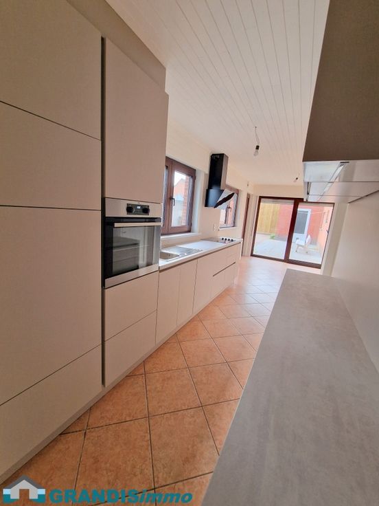 Halfopen bebouwing met oprit en GARAGE, 3SLPK, nieuwe keuken, warmtepomp, BEL 0475/33.16.73 of mail robby@grandisimmo.be