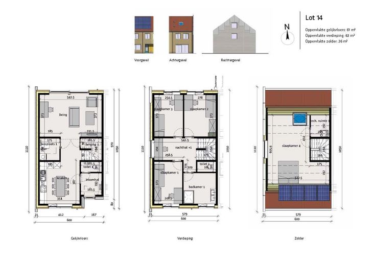 Op lot 14 wordt een energiezuinige halfopen woning gebouwd in strak traditionele stijl op een grondopp. van 144m² en met een totale bewoonbare oppervlakte van 124m² op de 1e en 2e verdieping en 36m² op zolder. GELIJKVLOERS: inkom, wc, lichtrijke ruime leefruimte, wasplaats met aansluiting voor wasmachine en droogkast, open keuken vooraan met zicht op de gemeenschappelijke parktuin. Mooie tuin met tuinberging. Hagen worden aangeplant rond de woningen. EERSTE VERDIEPING: 3 slpks, open bureauruimte, aparte wc, badkamer ingericht met inloopdouche en badkamermeubel met dubbele lavabo, vaste trap naar de zolderverdieping die wordt afgewerkt als master bedroom + aparte technische berging. Privéstaanplaats met mogelijkheid elektrisch laden voorzien. Durabrik zal hier 34 traditionele woningen bouwen rond een mooie parktuin. De woningen worden volledig afgewerkt aangeboden: met ingerichte keuken en badkamer, 2 toiletten, deuren en vloeren. Incl. Vloerverwarming standaard voorzien op het gelijkvloers, Ventilatiesysteem D, Regenwaterput 10.000L, Zonnepanelen inbegrepen waardoor de woning maximum E3 behaalt (fiscaal voordeel: 5 jaar vrijstelling betaling onroerende voorheffing!) en warmtepomp. Incl. hagen en tuinhuis. Download de brochure op https://durabrik.immo/wetteren-blauwe-paal . Voor meer info contacteer ons via het gratis nummer 0800 62 732 of via info@durabrik.be   Renovatieplicht: nee