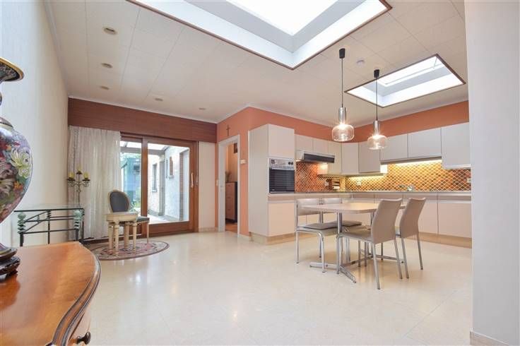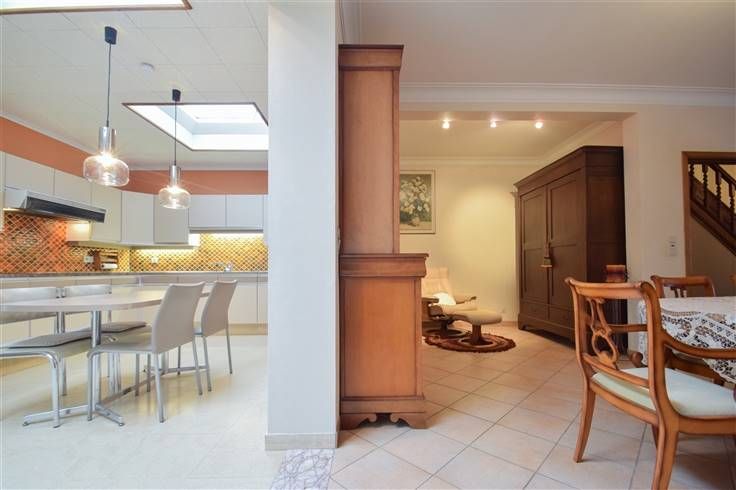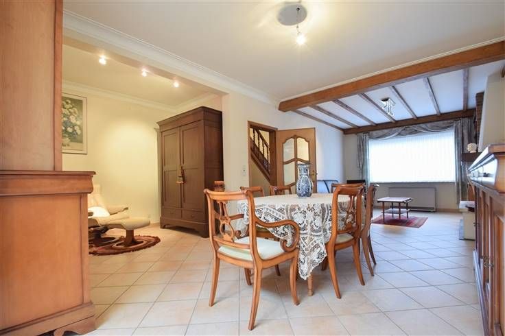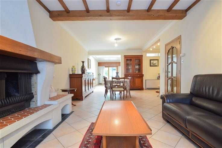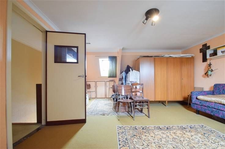 Deze te renoveren woning beschikt over een bewoonbare oppervlakte van 195m² en is gelegen op een perceel van 4a 12ca. Winkels, scholen, het openbaar vervoer, grootwarenhuizen en belangrijke verbindingswegen zijn vlakbij gelegen. De indeling is als volgt: op het gelijkvloers bevindt zich een inkomhal, een woonkamer bestaande uit een zithoek en een eetplaats (totale opp.: 50m²), een keuken (3 x 3,3m) uitgerust met een halogeen kookplaat, dampkap, oven, microgolfoven, koelkast en een dubbele spoelbak. Verder is er een hal met toegang tot een badkamer (1,9 x 4m) voorzien van een ligbad, douche en een enkele wastafel, een apart toilet met handwas, een berging-wasplaats (3,2 x 3,2m) voorzien van een lavabo, aansluiting voor een wasmachine en plaats voor een droogkast en een veranda. Op de eerste verdieping leidt de nachthal naar 2 slaapkamers (4,4 x 3,6m; 3,6 x 3,9m) en een bureau/dressing (1,9 x 3m). De zolderverdieping (4,4 x 6,3m) is bereikbaar via een vaste trap en biedt de mogelijkheid tot het creëren van extra slaapkamers. Bovendien is er een omheinde, zuid georiënteerde tuin met een overdekt terras en toegang tot een garage met een berging dat uitgeeft op de Verbindingsweg met een parkeerplaats voor één wagen. Kelder | accumulatieverwarming | Rolluiken | waterontharder | renovatieplicht van toepassing. Wenst u deze woning te bezichtigen? Contacteer ons gerust voor een afspraak. 015 711 000 - info@clavisvastgoed.be