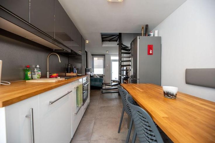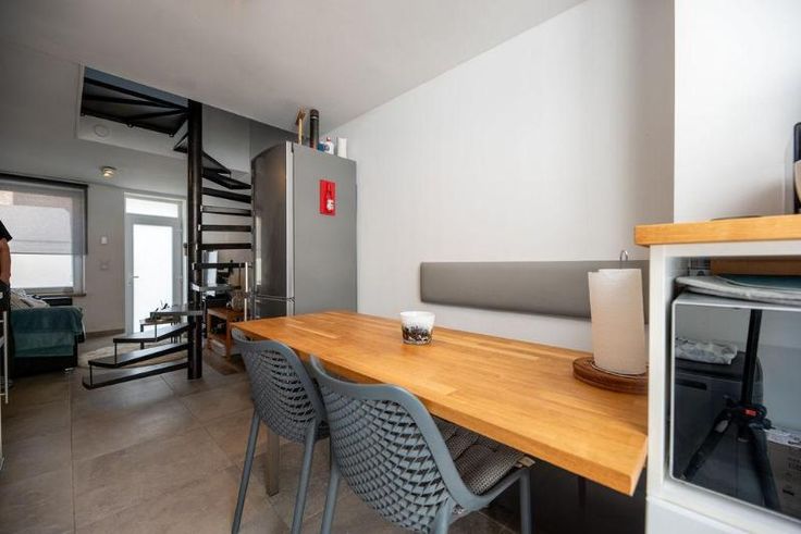 Belle maison mitoyenne entièrement rénovée à vendre à Aywaille, composée au rez-de-chaussée d'une cuisine équipée et d'un salon. Au premier étage, d'une chambre et d'une salle de bains (Douche et un évier). Au deuxième étage, d'une chambre. Une cave avec adoucisseur d'eau. Airconditionné. Pas de jardin mais une petite terrasse. Aucun frais à prévoir. Possibilité de réduction des droits d'enregistrement. Proche des grands axes autoroutiers. Visites sur rendez-vous préalable avec l'Etude au 04/384.48.41.