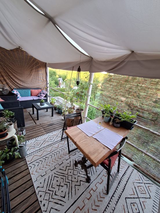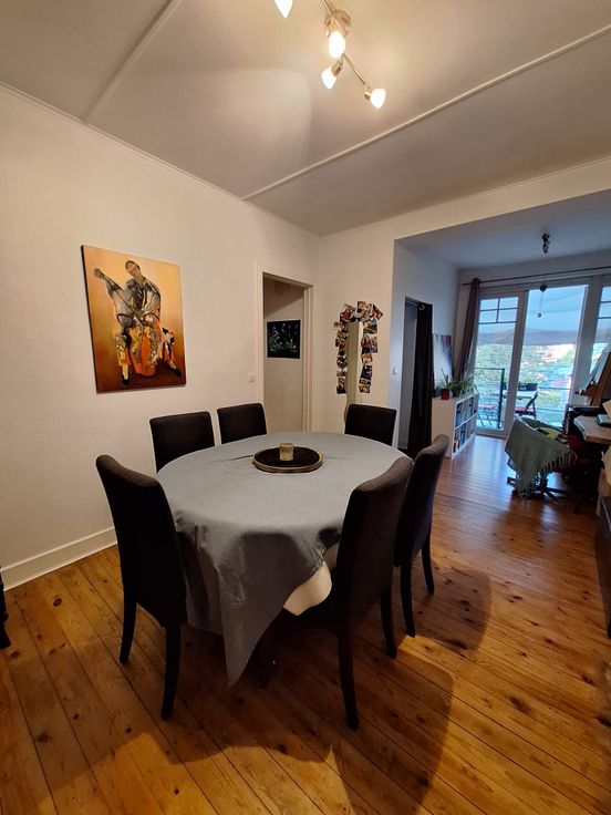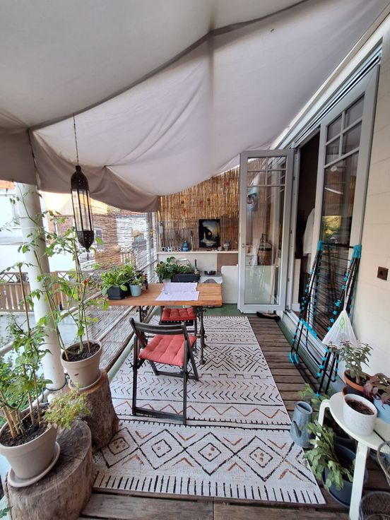 Contient deux chambres, un grand salon , une salle à manger. Vaste terrasse bien orientée avec jolie vue ( photo).