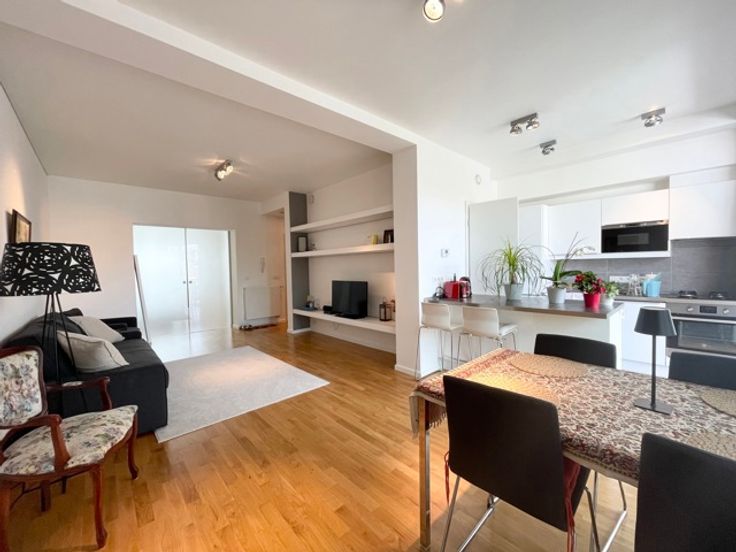 ETTERBEEK, vlakbij de Europese instellingen (metro en station Schuman). Prachtig GEMEUBILEERD APPARTEMENT (1bed/1bad) van 70 m² met terras. Gelegen op de 2e verdieping (geen lift), bestaat uit een lichte woonkamer, een open keuken die uitkomt op een terras, een slaapkamer van 12 m² met een badkamer met douche. Wasruimte en kelder. Vaste lasten: 85 euro (onderhoud verwarmingsketel, nutsvoorzieningen, tv/internet) PEB B. Te ontdekken bij L&P.