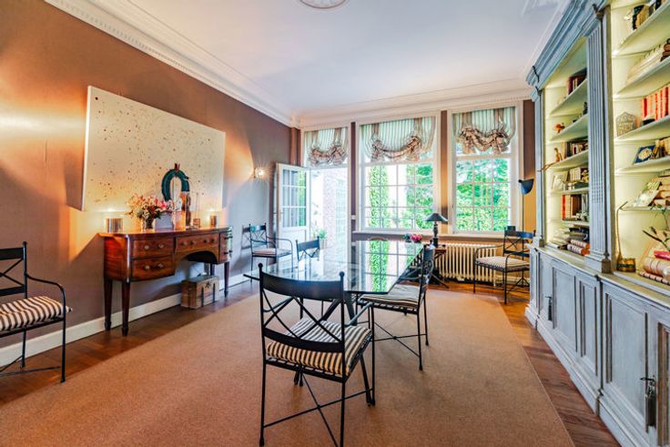 Avenue de la Floride, vlakbij de Avenue Montjoie en de winkels in de Rue Edith Cavell, een heerlijk karaktervol huis met een mooie tuin zonder inkijk en een garage. Voorbij de voordeur is een grote hal die leidt naar een prachtig trappenhuis, een garage en een grote multifunctionele ruimte die uitkomt op de goed belichte tuin. De eerste verdieping heeft een elegante zitkamer aan de voorkant, een volledig uitgeruste keuken en een eetkamer met toegang tot de tuin via een trap/terras. De tweede verdieping heeft een master suite met eigen badkamer en een grote studeerkamer (die kan worden omgebouwd tot slaapkamer). De derde verdieping bestaat uit twee slaapkamers en een doucheruimte. Overig: prachtige zolder met slaapkamer, kelders met stookruimte en opslagruimtes. Begane grond: +/-70m2 Entree, hal, gastentoilet en garderobe Aan de achterzijde, met toegang tot de tuin, een grote kamer die gebruikt zou kunnen worden als kantoor of speelkamer; waterinlaten om een douche te installeren; bijkeuken. Garage voor een auto 1e verdieping: +/-70m2 Overloop; aan de voorzijde, aantrekkelijke zitkamer met open haard Op het centrale niveau, ingerichte keuken met “counter” opening; eetkamer; dit kan worden verbouwd tot een grote keuken/familiekamer. Toegang tot de tuin via een trap 2e verdieping: +/-70m2 Grote ouderslaapkamer aan de achterzijde met kleedkamer; badkamer ook toegankelijk vanuit de voorkamer, die gebruikt zou kunnen worden als slaapkamer of studeerkamer. 3e verdieping: +/-6