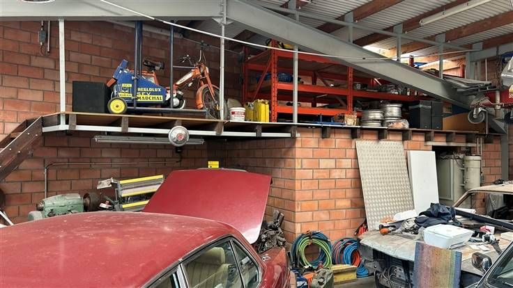 - Naast het magazijn ligt nog een andere garage die in gebruik blijft door de eigenaars, er wordt weldra een stevige tussenwand geplaatst.