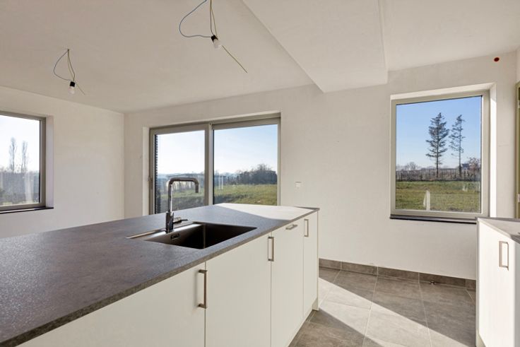 Aankoop nog tot 31 december mogelijk aan 6% btw! Deze 4 strakke nieuwbouw woningen bevinden zich te midden van uitgestrekte velden in het Hagelandse heuvellandschap. Nagenoeg elke ruimte (inclusief nachthal!) heeft een natuurlijke lichtinval. Bovendien valt er vanuit elk van deze ramen wel een nieuw prachtig verzicht te ontdekken.  De woningen beschikken over een lichtrijke leefruimte met open keuken en aanpalende berging, 3 ruime slaapkamers, een badkamer en 2 toiletten. Woningen 3 en 4 zijn bovendien bijna volledig onderkelderd. In deze kelders is er telkens plaats voor 1 wagen. Ook de wachtbuizen voor een laadpaal werden reeds voorzien.  Ook op gebied van energiezuinigheid presteren deze woningen bijzonder goed. Het E-peil varieert tussen 16 en 18 afhankelijk van de woning. Deze topprestatie wordt bereikt door het gebruik van een lucht-water warmtepomp in combinatie met vloerverwarming, vloerkoeling en 2.370 Wp aan zonnepanelen. Naast een lage energiefactuur zorgt dit lage E-peil ervoor dat je als koper de eerste 5 jaar geen onroerende voorheffing hoeft te betalen. Tot slot kunnen deze woningen nog tot eind 2024 worden aangekocht aan 6% btw ipv. 21%. Vraag gerust naar de voorwaarden.  Wacht niet tot de 6% regel is afgelopen en plan je bezichtiging ter plaatse. Dit kan via het nummer 0485 62 36 78 of via mail op nieuwbouw@living-stone.be
