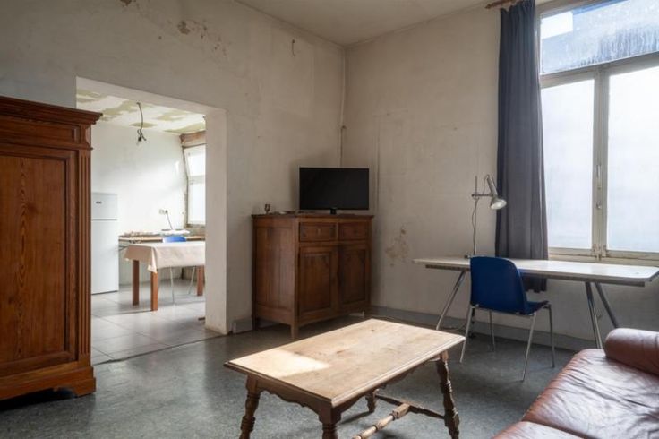 Maison située sur un coin, à rénover, composée de : - Au rez-de-chaussée : salon, salle à manger, pièce pouvant servir de cuisine, salle de douche (douche, WC, lavabo) - Au premier étage : deux chambres dont une donnant accès au grenier non-aménagé accessible via un escalier fixe. Le bien est équipé de châssis en bois simple vitrage, à l'exception de la pièce cuisine où des châssis double vitrage en PVC sont présents. Le bien possède des caves et un poêle au charbon récent. PAS DE JARDIN, ELECTRICITE NON CONFORME.