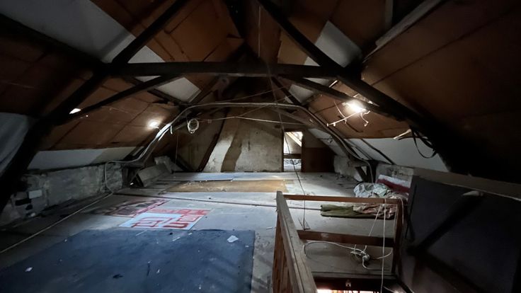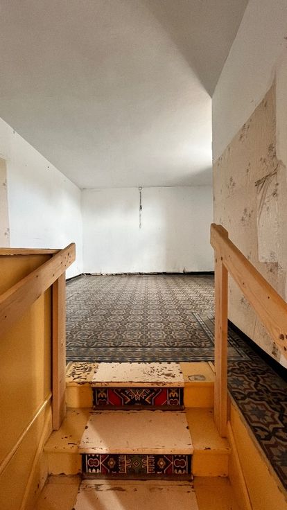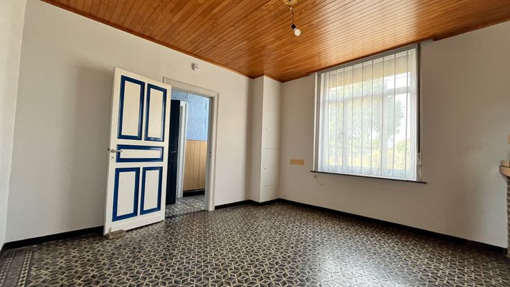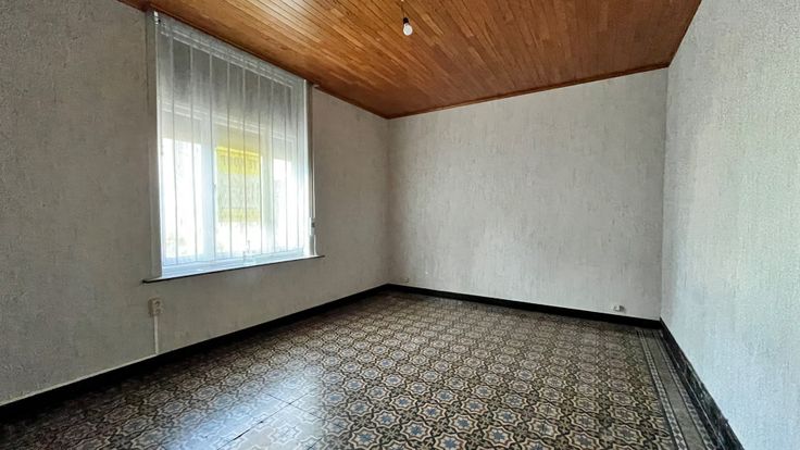 De te renoveren woning heeft de volgende indeling: inkom, kamer, toilet, leef en zitruimte, keuken, kelder, voute kamer, berging, trap naar het eerste verdiep die nu een open zolder is.