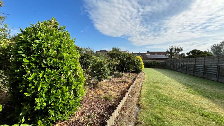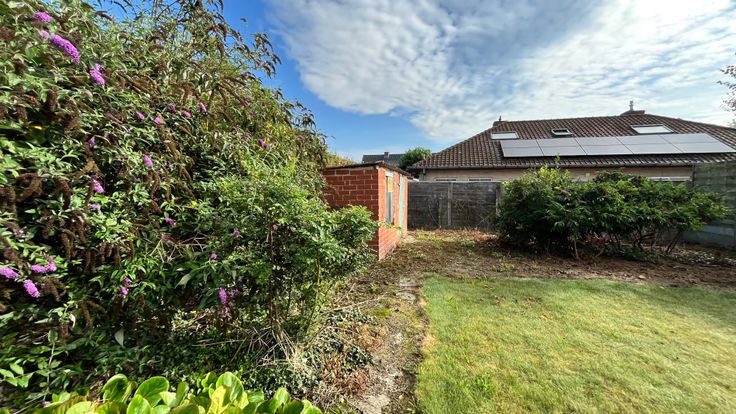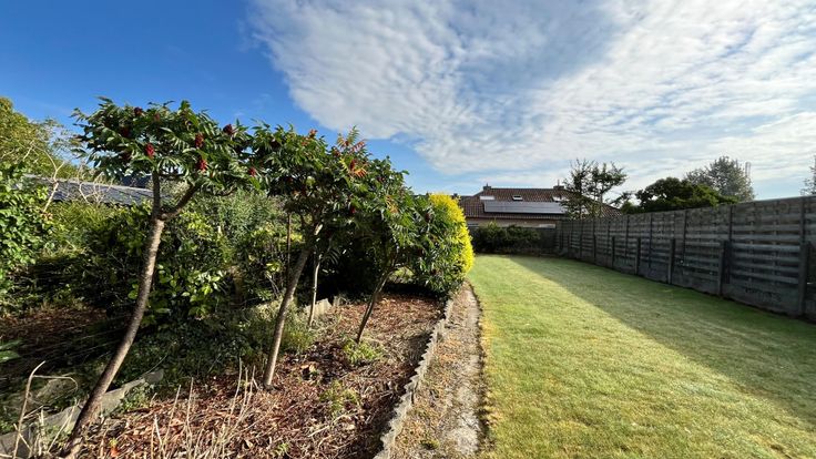 U kan de achtertuin van de woning via de erfdienstbaarheid/zijweg bereiken. Hier ziet u onmiddellijk het mooie stuk grond. Het middelste hok werd recent afgebroken waardoor het open stuk grond mooier tot zijn recht komt.