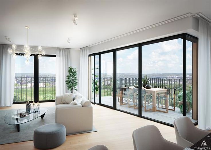EVERE, ideaal gelegen tussen de stad en de rand, dicht bij alle voorzieningen en communicatiewegen (E40, luchthaven, openbaar vervoer, ...), biedt het project "EVEREAST" u dit APPARTEMENT van 86 m² (2 slaapkamers/1 badkamer). Gelegen op de achtste verdieping, bestaat het uit een inkomhal met apart toilet en vestiaire, een wasruimte, twee slaapkamers en een badkamer (ligbad, dubbele wastafel). Grote woonkamer van 28 m² met toegang tot het terras. Een echt dorp in de stad om nieuwe energie op te doen en even afstand te nemen van de drukte. Het pand is gebouwd met duurzaamheid in het achterhoofd. Zeer efficiënte energie-isolatie. EPC A. Toegewezen kelder en parkeerplaats in extra. Te ontdekken bij L&P !