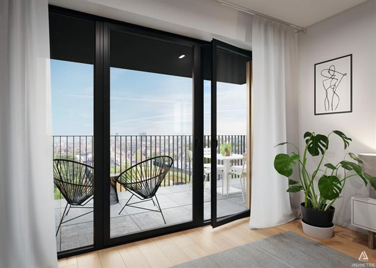 EVERE, ideaal gelegen tussen de stad en de rand, dicht bij alle faciliteiten en communicatiewegen (E40, luchthaven, openbaar vervoer, ...), het "EVEREAST" project biedt u dit APPARTEMENT (3slk/2bad) van 105,8 m². Gelegen op de dertiende verdieping, bestaat het uit een inkomhal met apart toilet en vestiaire. Ouderslaapkamer met eigen badkamer (bad, dubbele wastafel, WC), tweede slaapkamers, badkamer (bad, dubbele wastafel) met aangrenzende wasruimte. Grote woonkamer/open keuken van 31 m² met toegang tot een groot terras. Een echt dorp in de stad om nieuwe energie op te doen en even afstand te nemen van de drukte. Het pand is gebouwd met duurzaamheid in het achterhoofd. Zeer efficiënte energie-isolatie. EPC A. Toegewezen kelder en parkeerplaats in extra. Te ontdekken bij L&P!