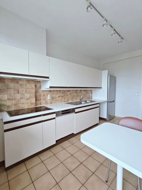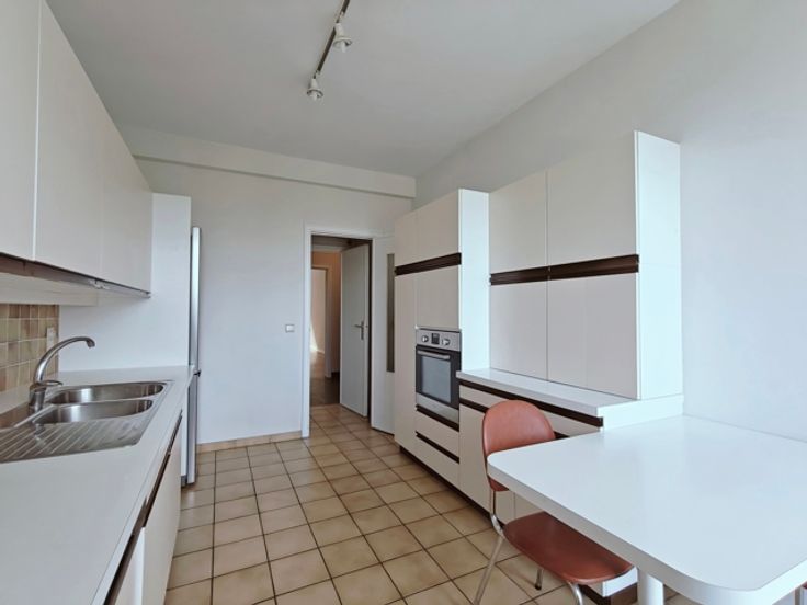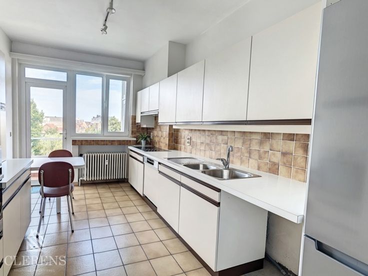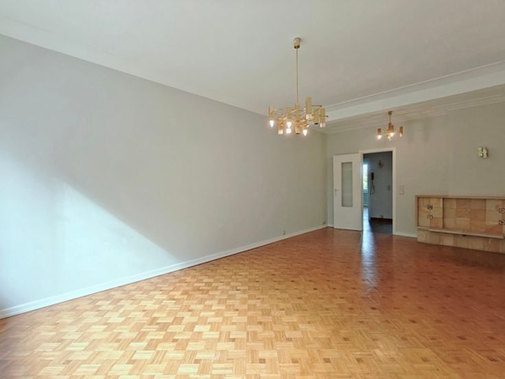 IXELLES, sur la belle Avenue Molière, entre la place Guy d'Arezzo et la chaussée de Waterloo, dans un immeuble des années 50, au 4ème étage sur 5 avec ascenseur, agréable appartement de 99m² habitables en bon état général comprenant : Vaste hall d'entrée, séjour/salle à manger en façade avant de +- 25m², grande cuisine super-équipée séparée avec coin à déjeuner et accès à la terrasse arrière orienté N-O, hall de nuit avec WC séparé et nombreux rangements, une grande chambre de +-16m², une salle de bain, une seconde chambre +- 15,5m². Une cave. Double vitrage, parlophone, chaudière commune au mazout. Local poubelles PEB : G, Libre immédiatement. Provisions de charges mensuelles : 200,00€ incluant le chauffage, l'eau et les communs. Localisation AAA !