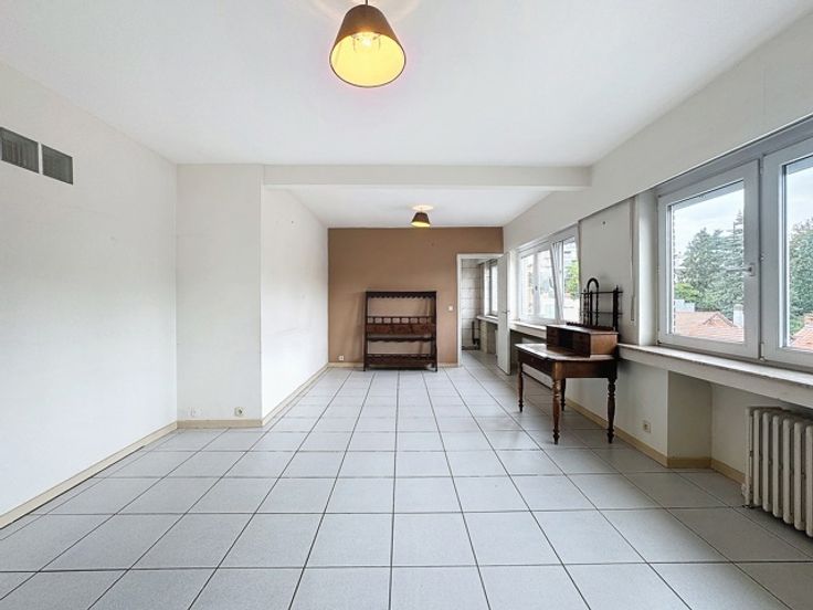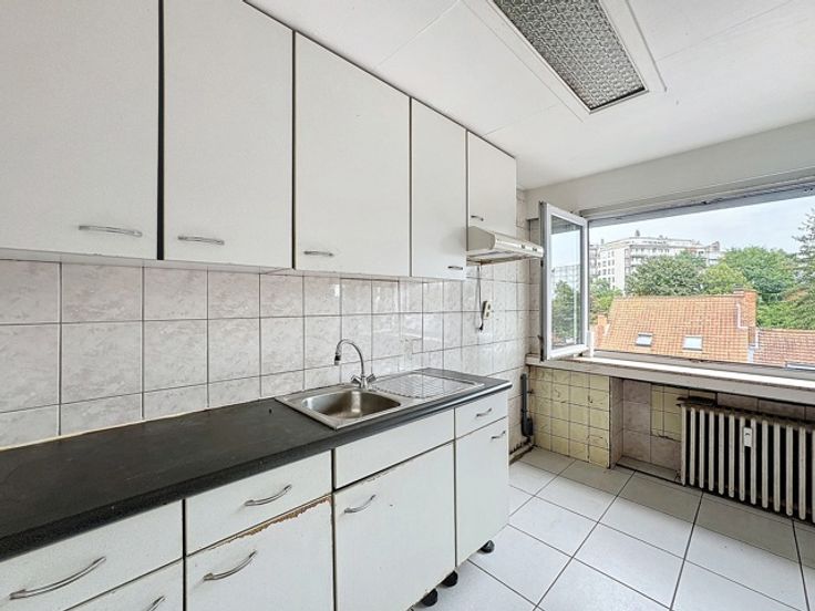 Maak een bod vanaf € 260.000 (Mits aanvaarding door de eigenaar)  Ukkel - Ideaal gelegen in een rustige omgeving, biedt G-Home u dit mooi appartement te renoveren aan met 2 slaapkamers en balkon van +/- 100m2 bewoonbare oppervlakte. Het appartement is als volgt samengesteld: Inkomhal +/- 8m2 - Woonkamer/eetkamer +/- 28m2 - Keuken +/- 8m2 (gasaansluiting) - 1e slaapkamer +/- 21m2 - Badkamer +/- 4m2 (ligbad, wastafel) - 2e slaapkamer +/- 17m2 met toegang tot het balkon Zuid-West gericht +/- 2,5m2 - apart toilet - Technische/bergruimte +/- 1m2 - Gemeenschappelijke olieketel - Lasten +/- 300€/ maand (reservefonds en werkkapitaal) - EPC 616 kWh/m2 (G). De gegeven informatie en opgegeven oppervlaktes zijn louter indicatief en houden geen enkele juridische verbintenis in. Ideaal gelegen appartement met veel potentieel! Zeker een bezoek waard! www.g-home.be