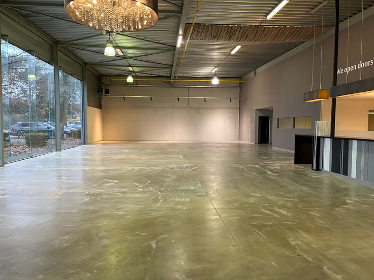 - Open ruimte met grote glazen gevel en veel natuurlijk lichtinval