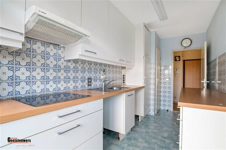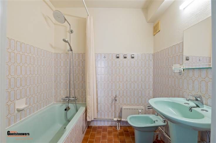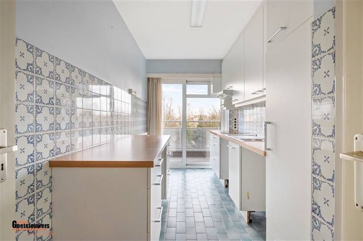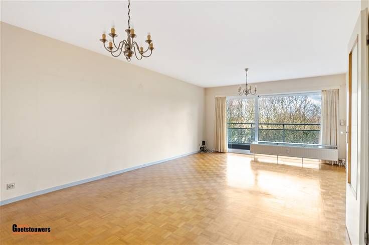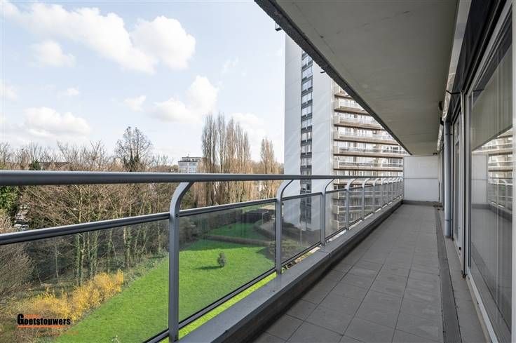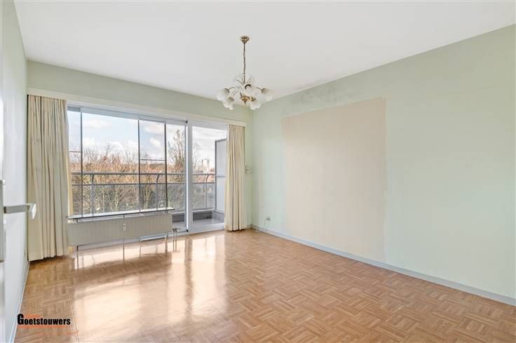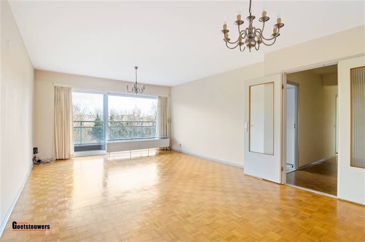 Degelijk, te moderniseren appartement met 2 slaapkamers en ruim terras op zeer centrale ligging. Het appartement is zeer praktisch ingedeeld als volgt; Men komt binnen in de ruime inkomhal, voorzien van ingemaakte vestiairekasten. De woonkamer, voorzien van blokjesparket geniet van zeer veel lichtinval dankzij de grote schuiframen, vernieuwd in 2018, die tevens toegang bieden tot het ruime terras over de ganse breedte. Hiernaast treffen we de ingerichte keuken, uitgerust met fornuis en dampkap, koelkast en voorzien van aansluitingen wasmachine en droogkast. Verder zijn er 2 ruime slaapkamers, waarvan de kleinste momenteel is ingericht als dressing met ingemaakte kasten. Beide slaapkamers bieden toegang tot het terras. Het appartement beschikt tevens over een kelderberging, een ondergrondse staanplaats aan te kopen aan 25.000,- euro en een bovengrondse staanplaats aan te kopen aan 12.500,- euro. Troeven ; - Vernieuwde ramen met elektrische rolluiken. - Zeer gunstig EPC. - Gelegen aan de rustige kant met groen uitzicht. - Interessante investering dankzij uitvoering project "Ringland". - Parkeerplaatsen zijn beschikbaar.