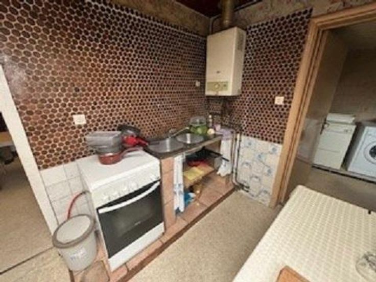 Maison à rénover comprenant au rez-de chaussée: salon, salle à manger, salle de bains, wc, une cour et une annexe (pigeonnier). Etage: 2 chambres en enfilade dont une qui permet d’accéder au grenier (aménageable) Contenance: 1a 80ca RC: 409,00 € Divers: châssis simple vitrage, chauffage au charbon mais qui ne fonctionne plus