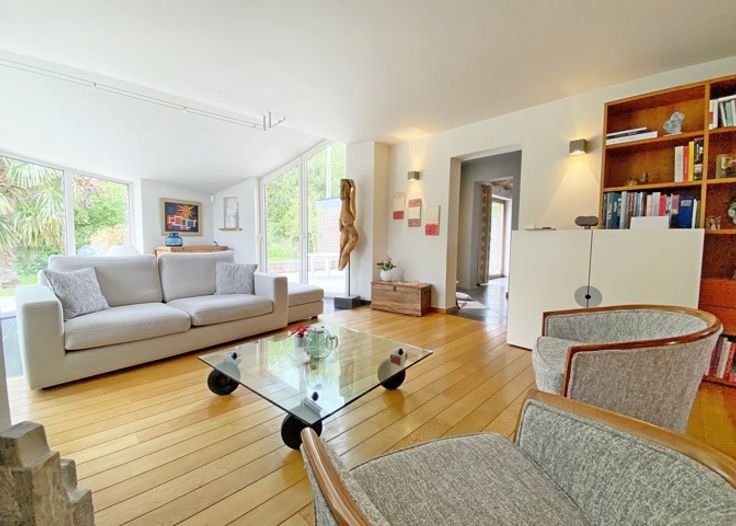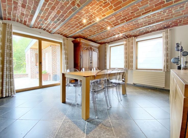 Dans un souci d'efficacité, demandes de visites souhaitées par MAIL ! Visite virtuelle sur nos sites et page Facebook - Bouvier immobilière !!! Avis aux amateurs de quiétude et amoureux de la nature ! Dans un cadre bucolique et verdoyant (zone d’espaces verts), sur 14a 30ca, superbe villa avec magnifique jardin joliment arboré et fleuri, terrasse pavée (sud & est), chaufferie (avec douche), carport (2 voitures), abri de jardin (en briques), et serre. Rénovée en 2003 avec beaucoup de goût et avec des matériaux nobles et de qualité, lumineuse et chaleureuse, elle se compose comme suit : - S/sol : cave voûtée. - Rdc : hall d'entrée, séjour (35,35 m²) (chauffage sol et k7 bois), salle à manger, cuisine ouverte super-équipée (électroménagers Miele et Smeg), vestiaire, buanderie, et wc. - 1er étage : hall de nuit, 3 chambres, salle de bains, et 2 greniers de rangement. - 2ème étage (actuellement aménagé en espace de bureaux avec placards intégrés) : chambre/bureau/bibliothèque/salle de jeux. Excellent niveau de confort : Electricité conforme, Chaudière mazout Viessmann + k7 bois, chauffage sol (séjour), châssis aluminium 2x vitrage, mini station d’épuration, citerne à eau de pluie + groupe hydrophore, adoucisseur, alarme Verisure, jardin entièrement clôturé, etc. Vue imprenable sur un bois et son étang, rue calme et peu fréquentée - tranquillité assurée ! A découvrir sans plus tarder - COUP de CŒUR assuré ! Situation idéale : A 15 min de Namur et de Louvain-la-Neuve, à proximité de