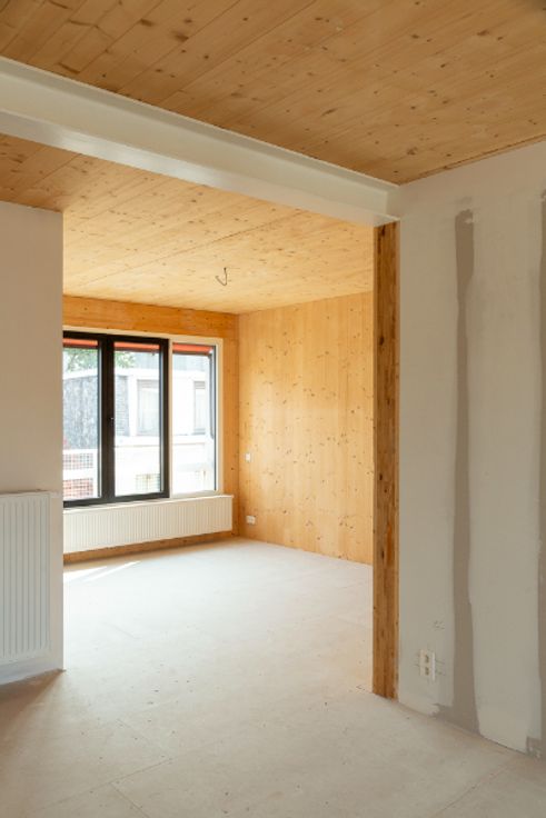 Het appartement is uitermate energiezuinig dankzij een individuele warmtepomp, ventilatiesysteem en eigen zonnepanelen. Het woonproject is volledig opgebouwd in CLT (Cross Laminated Timber), een ecologisch verantwoord en duurzaam materiaal.
