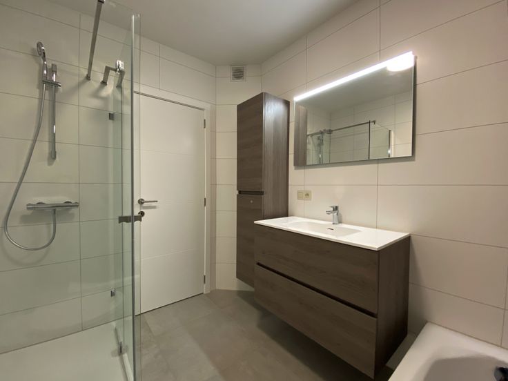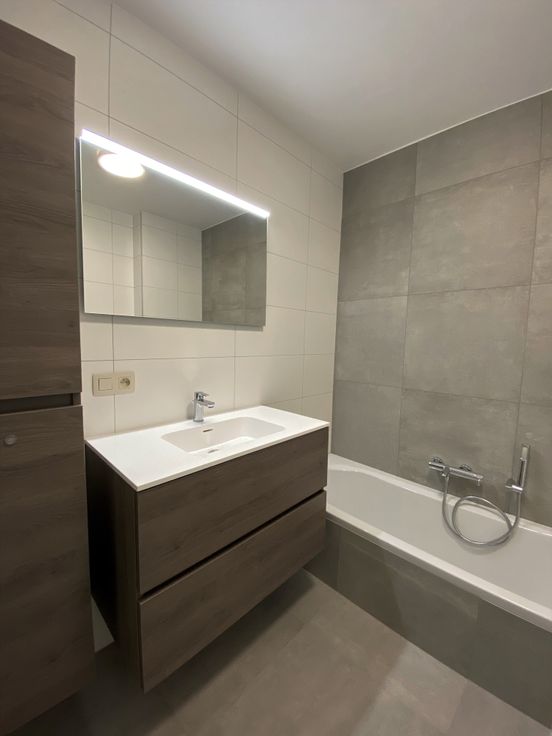 - Prachtige badkamer met ligbad, douche, toilet en lavabomeubel
