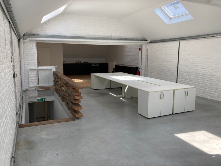 Au 1er étage du bâtiment arrière complètement rénové en 2018, superbe espace polyvalent très lumineux de +/- 125 m2.