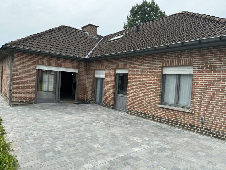 Grote garage + oprit voor meerdere voertuigen.