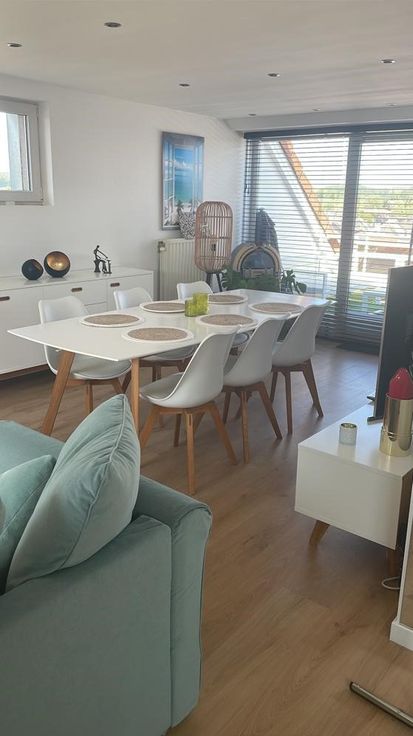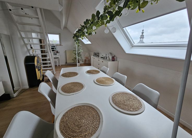 Het lichtrijke en eigentijds ingerichte appartement omvat een leefruimte (zithoek, eetplaats, bureau), een open keuken, een badkamer (met douche, toilet en wastafel), een slaapkamer en een gezellig dakterras.