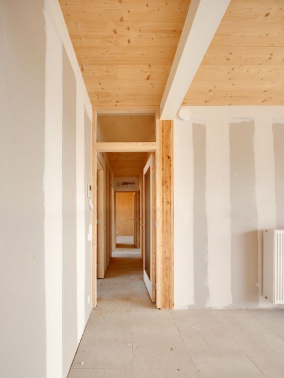 Het appartement is uitermate energiezuinig dankzij een individuele warmtepomp, ventilatiesysteem en eigen zonnepanelen. Het woonproject is volledig opgebouwd in CLT (Cross Laminated Timber), een ecologisch verantwoord en duurzaam materiaal.