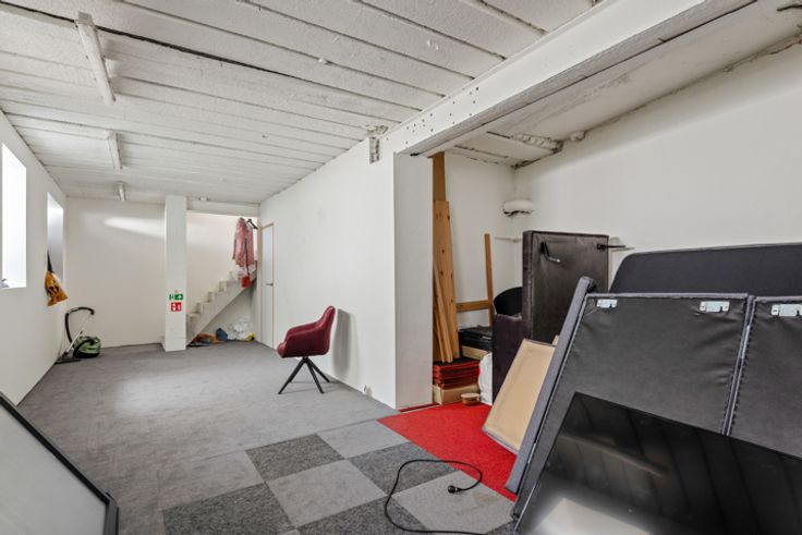 De ruimte bestaat uit een kantoor/verkoop ruimte op de begane vloer en een propere, droge opslag/stockage ruimte in de kelder.