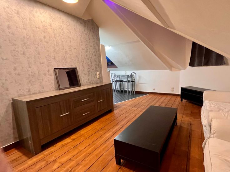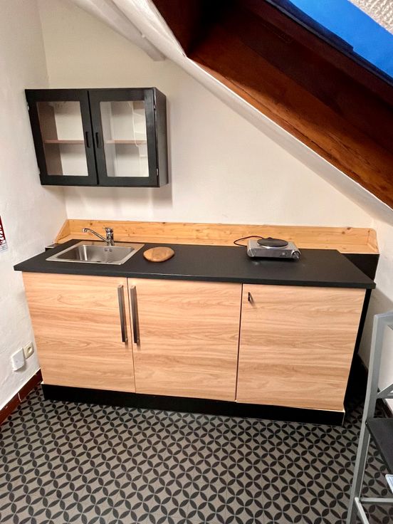 Il se compose d'un grand living s'étendant sur une cuisine, d'une salle de bain d'une chambre à coucher et d'un petite hall d'entrée.