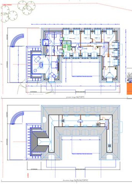 Au premier étage : 5 chambres ( 30m², 21m², 13m², 13m² & 9m²), deux SDB et 2 WC.