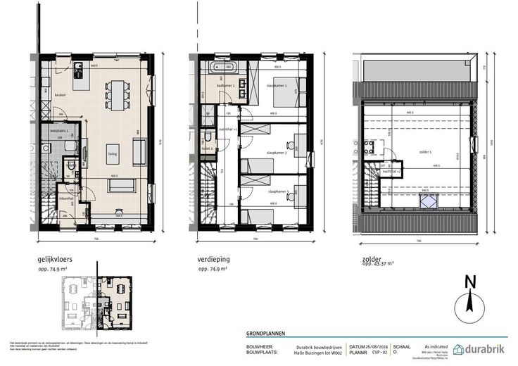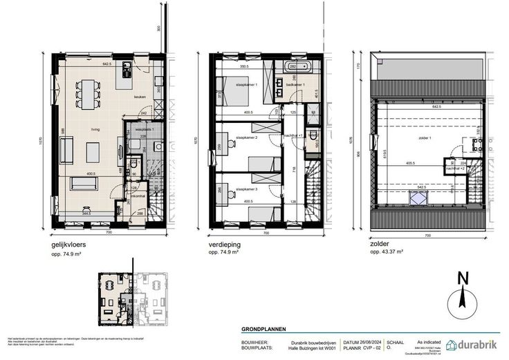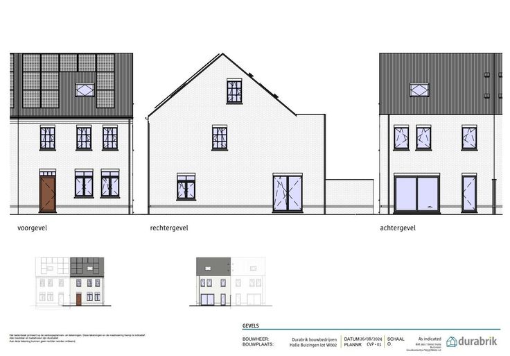 In het Geynstbos in Buizingen, Halle bouwen we in een eerste fase 2 klassieke halfopen bebouwingen. Hier wordt een centrale ligging gecombineerd met een mooie groene omgeving. Naast de grote percelen zijn de woningen ook voorzien van open, lichtrijke leefruimtes en er zijn tot wel 5 slaapkamers mogelijk dankzij de ruime zolder. De zonnepanelen en warmtepomp zorgen op hun beurt dan weer voor een E-peil 0 waardoor je meer dan klaar bent voor de toekomst. Hier is het gegarandeerd heerlijk vertoeven! De woningen worden VOLLEDIG AFGEWERKT aangeboden: met een ingerichte keuken, badkamer (met douche, ligbad en dubbel lavabomeubel), 2 toiletten, deuren en vloeren. Vloerverwarming wordt standaard voorzien, alsook zonnepanelen, warmtepomp lucht/ water, ventilatiesysteem D, regenwaterput 7500l. Heb je vragen? Contacteer dan je bouwadviseur via 09/280.60.60 of mail naar info@durabrik.be. * Beelden en oppervlaktes zijn indicatief.