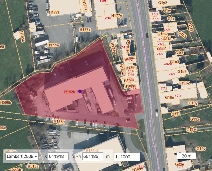 Gebouw met visibiliteit vanuit de N6. Opslag/atelier : 645 m² (h 7,5m) - kantoren/showroom : 197 m² - stockage op -1 (h 3m) : 380 m² - totaal terrein : 2.995 m².