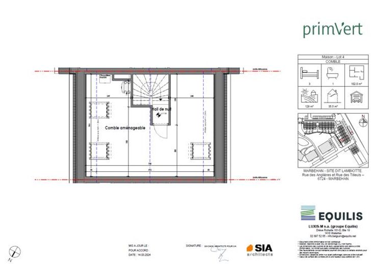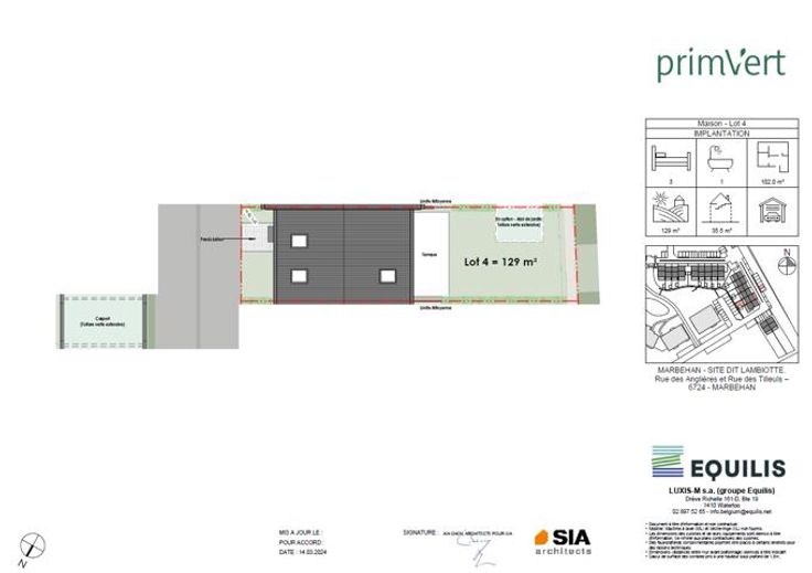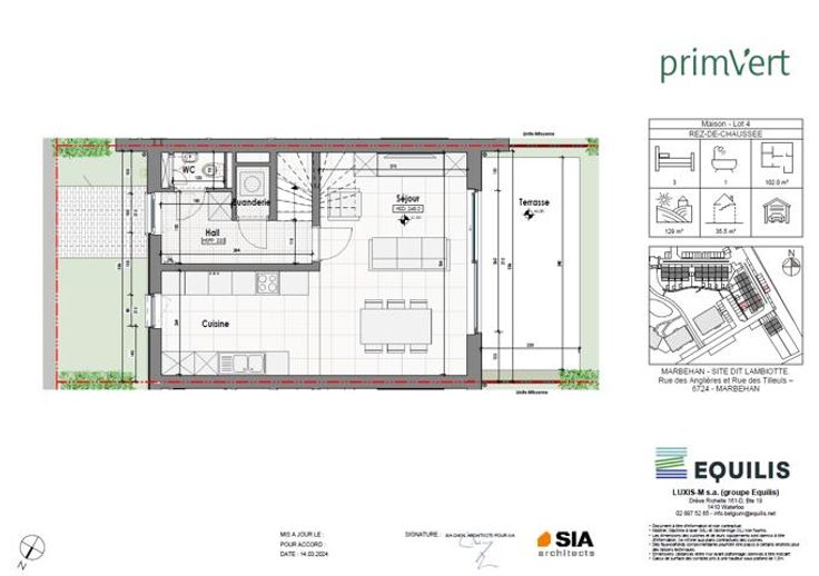 Maison 4 - PRIM'VERT, votre nouveau quartier nature à Marbehan (HABAY), propose 17 maisons et 38 appartements au coeur d'un parc de verdure. Conçu pour susciter un sentiment de liberté et de sécurité en favorisant le retour à soi et à la nature dans un environnement serein et durable, Prim’Vert fait la part belle à la mobilité douce et crée un esprit de village avec des espaces à vivre et à partager: aire récréative, potager, point d’eau et liaisons piétonnes. Les maisons offrent un grand confort avec des combles aménageables permettant de réaliser une/deux chambre(s) et une salle d'eau supplémentaires, un jardin privatif orienté sud ou sud-ouest avec terrasse, deux emplacements de parkings dont un carport et des équipements performants: chaudière gaz à condensation individuelle, double vitrage PVC, façade isolante, ventilation double flux, cuisine équipée et sanitaires (inclus), PEB A et A+. Les prix annoncés s’entendent terrain + construction, hors frais de vente (TVA, notaire, acte de base, frais de raccordements) et incluent un parking ainsi qu'un carport par habitation. Renseignements et présentation du projet : Astrid BACKES - a.backes@treviluxembourg.be +32 (0)491 11 48 50 - www.treviluxembourg.be - projets neufs