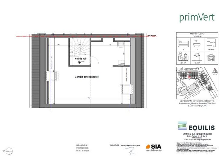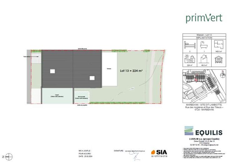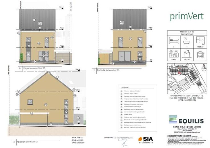 Maison 13 - PRIM'VERT, votre nouveau quartier nature à Marbehan (HABAY), propose 17 maisons et 38 appartements au coeur d'un parc de verdure. Conçu pour susciter un sentiment de liberté et de sécurité en favorisant le retour à soi et à la nature dans un environnement serein et durable, Prim’Vert fait la part belle à la mobilité douce et crée un esprit de village avec des espaces à vivre et à partager: aire récréative, potager, point d’eau et liaisons piétonnes. Les maisons offrent un grand confort avec des combles aménageables permettant de réaliser une/deux chambre(s) et une salle d'eau supplémentaires, un jardin privatif orienté sud ou sud-ouest avec terrasse, deux emplacements de parkings dont un carport et des équipements performants: chaudière gaz à condensation individuelle, double vitrage PVC, façade isolante, ventilation double flux, cuisine équipée et sanitaires (inclus), PEB A et A+. Les prix annoncés s’entendent terrain + construction, hors frais de vente (TVA, notaire, acte de base, frais de raccordements) et incluent un parking ainsi qu'un carport par habitation. Renseignements et présentation du projet : Astrid BACKES - a.backes@treviluxembourg.be +32 (0)491 11 48 50 - www.treviluxembourg.be - projets neufs