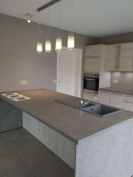 buanderie, grand séjour avec cuisine équipée (meubles +ilot central)