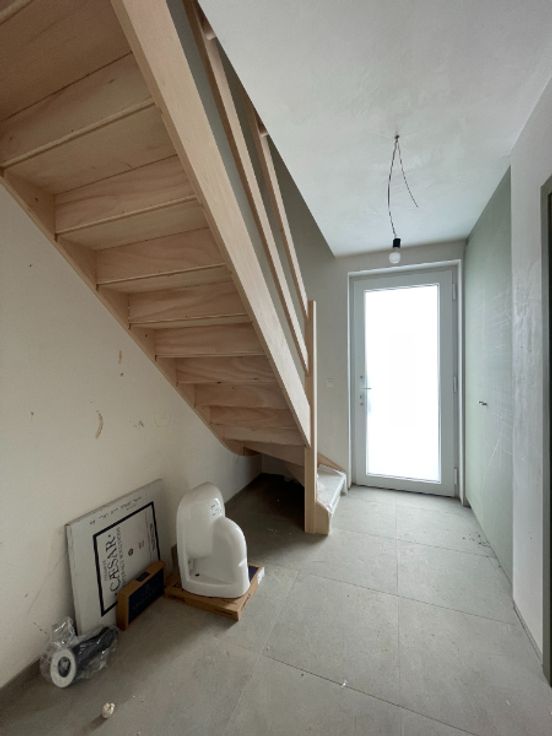 Algemeen: woning zal nog volledig geschilderd worden - laminaat op de eerste verdieping wordt voorzien - tuin wordt in oktober aangelegd - beschikbaar vanaf 01/10/2024 - zeer energiezuinig (vloerverwarming/ventilatie D/zonnepanelen) - zonnige tuin - rustige ligging - de foto van de keuken is van een gelijkaardige keuken.