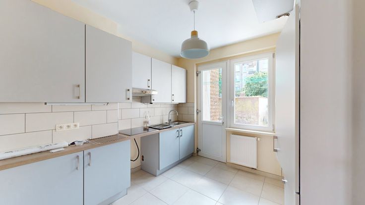 ETTERBEEK - Uitstekende locatie dicht bij Thieffry (winkels en vervoer, enz.) - Licht en mooi appartement van +/- 85 m2 (volgens EPB) gelegen op de 1e verdieping van een klein gebouw met 3 verdiepingen - Het is als volgt samengesteld: Inkomhal - Woonkamer van +/- 25 m2 - Ingerichte keuken (inductiekookplaat - koelkast-oven - vaatwasser ruimte) die toegang geeft tot een balkon van +/- 2 m2 - Nachthal - 2 slaapkamers van +/- 11m2 en +/- 9 m2 - Badkamer - Aparte WC - Kelder - Parketvloer - Fietsruimte - Parlofoon - Beschikbaar per direct - PEB C - Huur: €1125 + €80 gemeenschappelijke lasten - Een must-see! VIRTUEEL BEZOEK -- https://my.matterport.com/show/?m=6Z7QTFHeBfF --