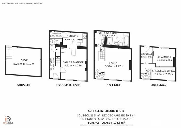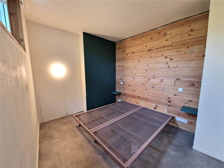 2ème étage : palier, pièce dressing (+/-4 m²), 1 chambre (+/-10 m²), bureau ou 2ème chambre (+/-9 m²).