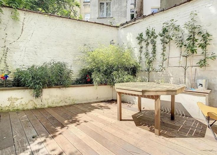 Quartier Molière - Dit prachtige Brusselse huis ligt in een rustige straat met eenrichtingsverkeer en biedt een totale oppervlakte van ± 227 m² en een lichte buitenruimte op het zuiden. Gebouwd in 1904, zult u verleid worden door de ligging, de afwerking (kwaliteitsmaterialen), de charme, de lichtinval, de volumes en de buitenruimte (in exotisch hout). Het bestaat uit een inkomhal, een dubbele woonkamer met open haard, een bureau, een gastentoilet, een eetkamer met toegang tot een binnenplaats/tuin van ± 24 m², een open keuken, 3 slaapkamers, twee badkamers (waarvan één met toilet) en een apart toilet. Tal van op maat gemaakte opbergruimtes: inloopkasten en ingebouwde kasten. Een wasruimte/berging maakt deze woning compleet. Vlakbij de Europese School Dichtbij openbaar vervoer. Technische details : In 2021: isolatie van plat dak en achtergevel. PEB: E+ Elektriciteit tot norm