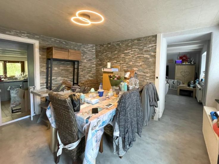 LORRAINE : Province de Luxembourg 6630 MARTELANGE Charmante maison d’habitation 3 façades (3 chambres), avec cave, garage indépendant (un emplacement voiture, porte manuelle), terrasse, place de parking et un jardinet à l’avant (NORD-OUEST) sur 5 ares et 62 centiares au total. Composition du bien : Rez-de-chaussée : salle à manger, salon, cuisine équipée, hall avec volée d’escaliers, WC séparé, buanderie et une chaufferie. 1er étage : hall de nuit, 3 chambres, 2 pièces (à aménager) et une salle de bains (baignoire, meuble lavabo et un WC). Combles : un grenier de rangement. Sous-sol : une petite cave. Quelques renseignements complémentaires : Châssis en bois avec double vitrage (1989), chauffage au mazout (chaudière « Riello », cuve de 2.00 n ardoises (à isoler et à revoir, à remplacer à l’arrière de la maison), sols carrelés/vinyle dans les différentes pièces, compteur électrique bi-horaire, … Travaux de rafraichissements à prévoir ! Ce bien dispose d’une servitude de passage au niveau de l’allée de garage et à l’avant du jardinet. Superficie habitable : +/- 159 m² Cette maison est située dans une rue calme, voie sans issue, non loin de la ville d’Arlon et à proximité des commerces/supermarchés, restaurants, écoles, médecins/pharmacies, banques, autoroutes E411/E25/N4 et de nombreuses activités. Certificat PEB : CLASSE D – 309 kWh/m² R.C : 550 € (à confirmer) Prix demandé : 250.000 €