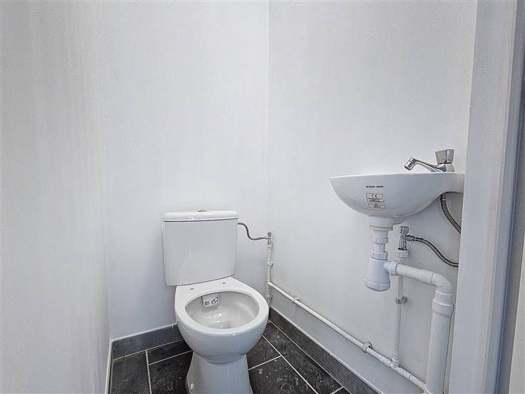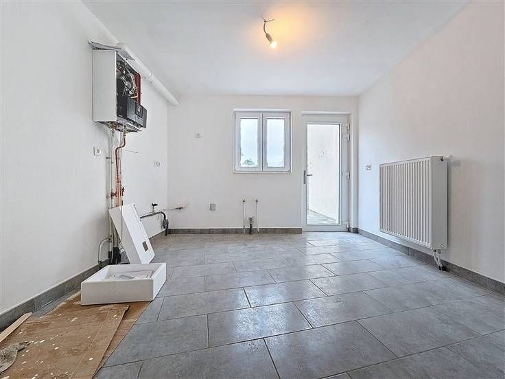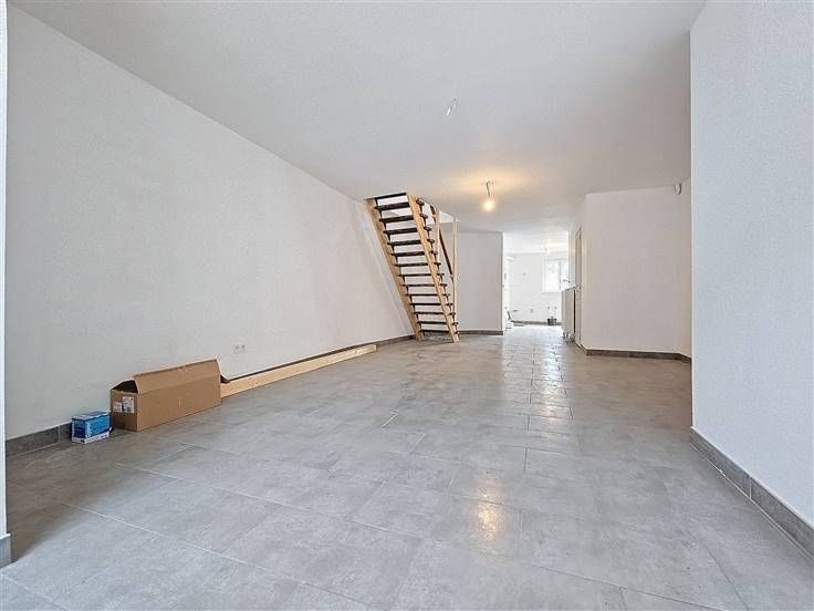 Rez: Petit hall d'entrée, WC séparé, living, buanderie, pièce cuisine (à installer par l'acquéreur), terrasse, jardin.
