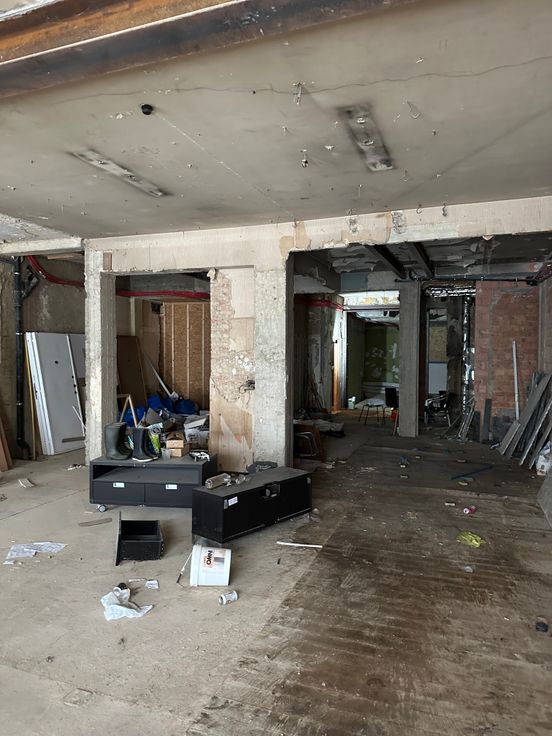 Verlichting/vloer/meubels/... zelf te voorzien door de huurder.