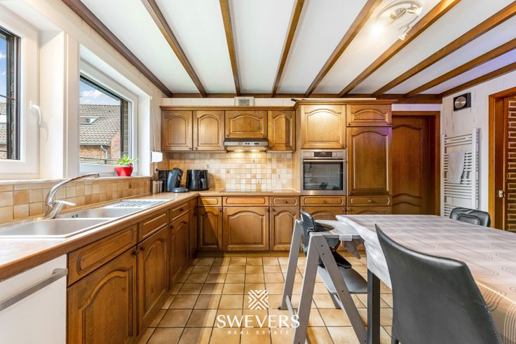 Voor meer info en foto’s, surf naar www.swevers.be – Welkom in deze instapklare open bebouwing aan Wilbroek 12 in Paal. Deze woning uit 1983 werd in 2020 grondig gerenoveerd, met aandacht voor energie-efficiëntie en duurzaamheid, waaronder een bijbouw, dakisolatie, en nieuwe dubbele beglazing. Met een bewoonbare oppervlakte van 284 m² biedt de woning veel ruimte en comfort. De ruime woonkamer op de begane grond, van 34,38 m², baadt in het licht door de grote ramen en heeft airconditioning. De keuken van 13,60 m² is modern uitgerust. Er is een slaapkamer van 19,64 m² op de begane grond, ideaal als master bedroom. Daarnaast vindt u hier een badkamer, apart toilet, wasruimte en een inpandige garage van 18,72 m². Op de eerste verdieping zijn drie slaapkamers van 12,12 m² tot 19,88 m², twee ervan met airconditioning, en een extra toilet. De kruipkelder van 19,48 m² en de zolder van 13,46 m² bieden extra opslagmogelijkheden. Het perceel van 8a 5ca is noordwestelijk georiënteerd, met rolluiken en zonnewering voor comfort en privacy. Gelegen op 2,1 km van de snelweg, dicht bij scholen, openbaar vervoer, winkels, en de Paalse Plas, biedt deze woning een uitstekende locatie. Voor meer informatie, bel 011 255 155. Bron bewoonbare oppervlakte: EPC – verslag.