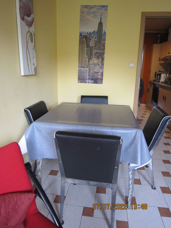 Appartement meublé idéalement situé au centre de Gosselies. Situé au 1er étage dans un petit immeuble de 3 étages. L'appartement est prévu pour 2 personnes maximum. Je ne communique que par téléphone entre 17h et 20h. Donc pas de mail je ne répond pas. L'appartement se compose comme suit : escalier, porte d'entrée, séjour, cuisine équipée(frigo, hotte, taque électrique, four) salle de bain avec évier, baignoire, douche meuble de salle de bain et wc. 1 chambre, débarras, chauffage central gaz individuel, chassis double vitrage PVC Prix 520€/mois + 100€ provisions Appartement proche des écoles, transport en commun(métro, bus) et des commerces