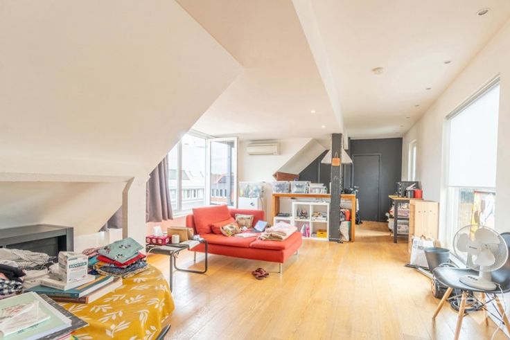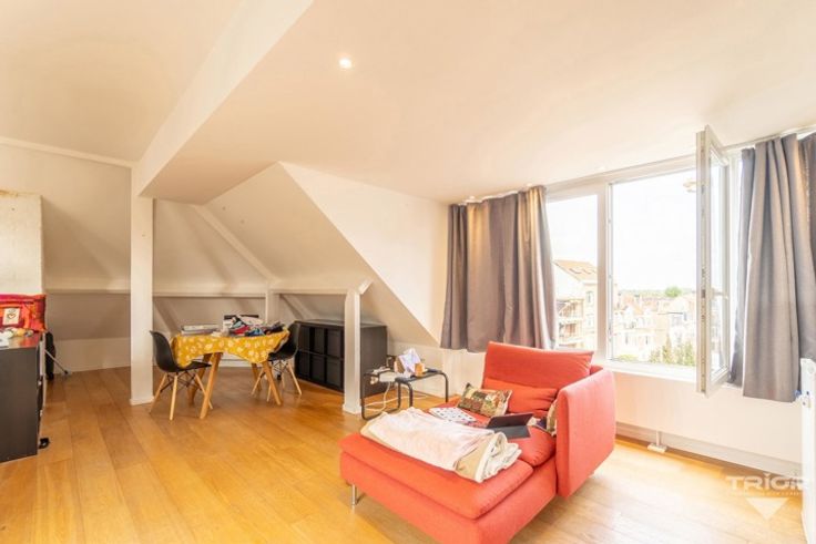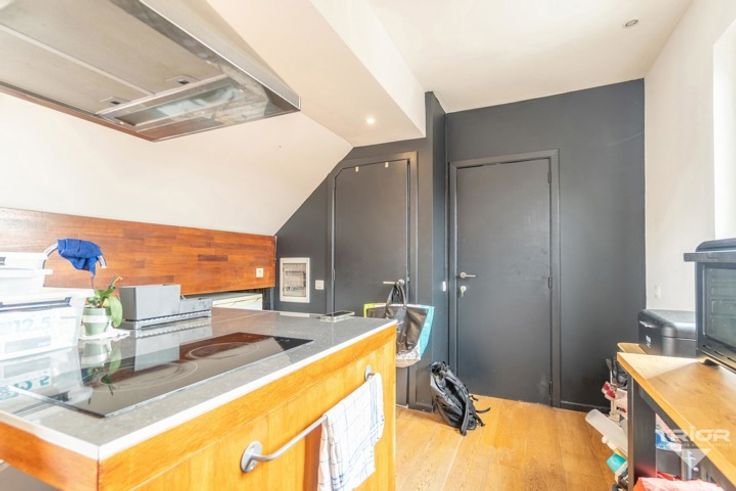 TRIOR Woluwe vous propose cet agréable flat de +/- 60m² avec belle terrasse. Situé au 3ᵉ et dernier étage d’un petit immeuble SANS ascenseur, il se compose d'une grande et lumineuse pièce de vie avec espace nuit et terrasse Sud-ouest, une cuisine équipée (taque, hotte, frigo et machine à laver) et une salle de douche (cabine de douche, toilette et lavabo). DIVERS : PEB : G. Double vitrage et chaudière individuelle gaz. CHARGES : 15€/mois : Provision pour les communs. Une visite? Appelez-nous! Les visites ne peuvent être planifiées que par téléphone. Descriptif complet sur www.TRIOR.be