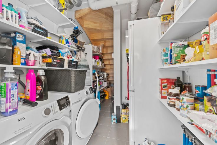 Indeling: inkom - gastentoilet - lichtrijke leefruimte - open keuken - berging met aansluiting wasmachine/droogkast - badkamer met toilet, dubbele lavabo, ligbad en douche - 3 slaapkamers - zolder - zuid-gerichte tuin met aangelegd terras en zonneluifel - fietsenberging - parkeerplaats.